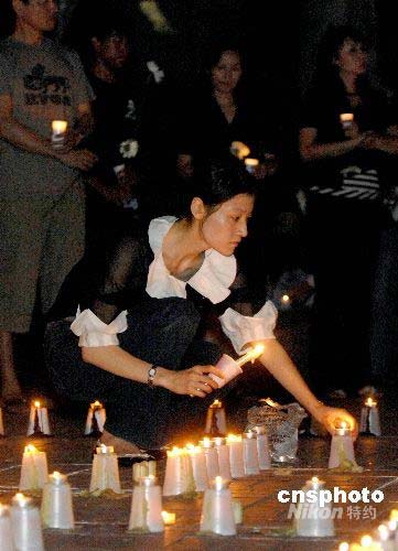 圖:洛杉磯中國留學生燭光追思地震遇難者(2)