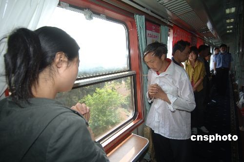 組圖:地震災區(qū)首趟運送傷員專列順利抵達重慶(8)
