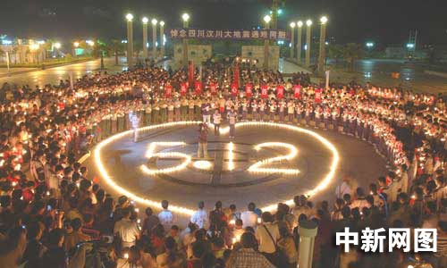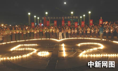 5月20日是全國(guó)哀悼日三天中的第二天,在浙江溫州市百島洞頭新城廣場(chǎng)上,洞頭縣消防大隊(duì)的官兵們點(diǎn)燃祭奠逝者的燭臺(tái),擺放成含有5月12日標(biāo)志的心型,讓5月12日不幸遇難的同胞以及為了災(zāi)區(qū)安危舍身救人的消防官兵,為中國(guó)所銘記。哀傷的氣氛在廣場(chǎng)彌漫,廣場(chǎng)上的人們默默地守護(hù)著自己手中的燭光,低頭默哀,他們希望通過這種方式將地震遇難同胞通往天堂的路照亮,將受災(zāi)地區(qū)抗災(zāi)自救的路照亮。(江耘 林加佳 林加杰)