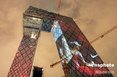 圖:巨型投影扮靚央視新址 體育精神鼓舞中國(guó)加油 (3)