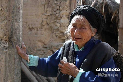 6月2日,86歲的羌族老人王天秀在倒塌的房屋前哭泣。中新社發(fā) 曾憲平 攝