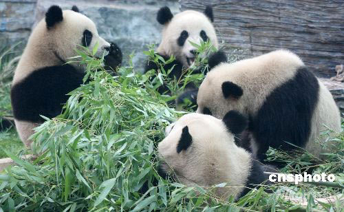 2008年6月5日,北京動物園熊貓新館正式開放。從四川臥龍來到北京的八只熊貓當日在新館正式亮相,吸引了許多市民前來觀看。中新社發 吳芒子 攝