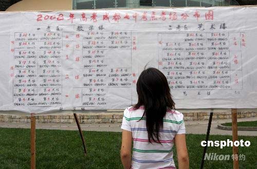 四川成都,前來熟悉高考考場的同學正在觀看考場分布圖。中新社發 黃榮 攝