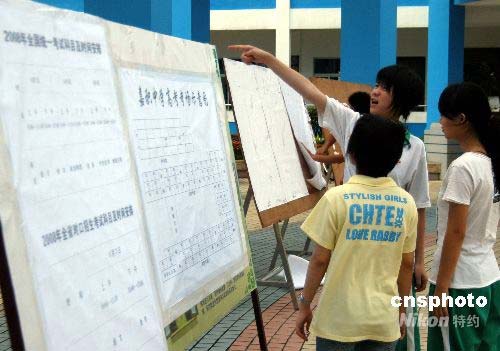 6月6日,海南瓊海,幾位考生在查看考場位置。中新社發 蒙鐘德 攝