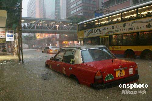 六月七日,香港遭遇黑色暴雨,眾多店鋪及住戶進水,街道變成一片澤國。中新社發 武仲林 攝