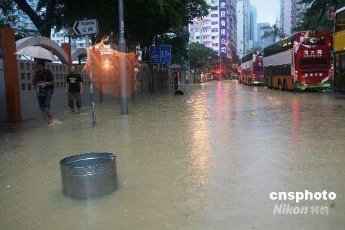 圖:香港遭遇黑色暴雨 街道變澤國(3)