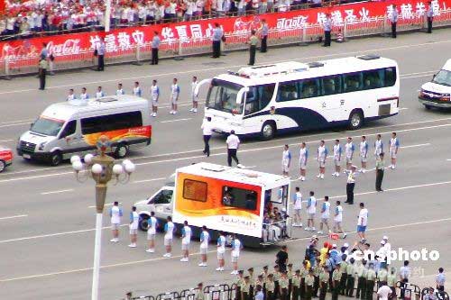 首棒由吳數德與莫慧蘭交接。中新社發 駱文剛 攝