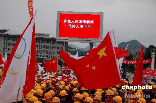 當地大屏幕上打出“百色人民深切緬懷一代偉人鄧小平!”。中新社發 劉萬強 攝