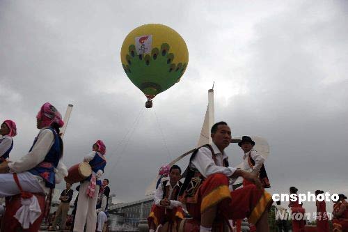 昆明世博園升起熱氣球迎接圣火。 中新社發 廖攀 攝