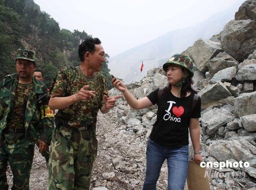 參加搜救的四川省軍區達州陸軍預備役炮兵旅旅長楊喜燦,一邊在途中向記者介紹官兵多天來艱辛,一邊趕往指揮部匯報。中新社發 賈國榮 攝