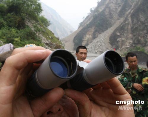 參加搜救的四川省軍區(qū)部隊在被稱為“死亡谷”的地震中心,繼續(xù)觀察山高林密非常險峻的失事地點。中新社發(fā) 賈國榮 攝