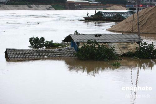 2008年6月15日,廣東佛山水位持續高漲,防洪壓力增大,局部地區已經受災。目前,廣東省全面進入主汛期的關鍵時刻,防汛任務艱巨。根據廣東省防總6月14日的最新統計,全省受災人口達到222萬人,死亡18人,倒塌房屋3684間,全省直接經濟總損失18.7億元。省防總預計未來發生流域性大洪水的可能性很大,局部地區還可能發生嚴重洪澇災害。中新社發 春添 攝