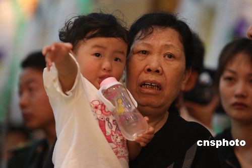 29歲的空中機械師陳林烈士剛滿周歲的女兒在現場望見爸爸的遺照,天真地手指著直喊“爸爸”,不禁令全場將士動容垂淚。中新社發 賈國榮 攝