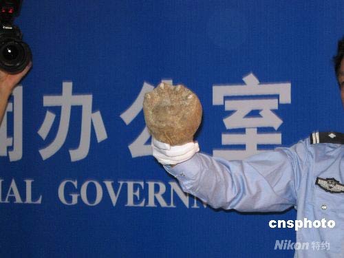 圖為該省警方在發布會上展示在周正龍家查出的周正龍用于拍攝野生華南虎足跡照片所使用的木制模具。中新社發 趙景榮 攝