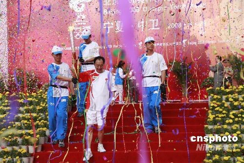 圖:作家張賢亮傳遞奧運火炬寧夏第一棒