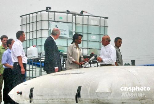 圖為賴斯在玉塘鎮永固村參觀美國捐贈的水凈化項目。中新社發 黃永莉 攝