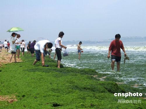 奧帆賽舉辦地青島動員各界清理近海滸苔(3)