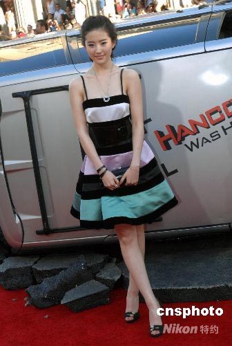 當(dāng)?shù)貢r(shí)間六月三十日晚,索尼電影公司出品的喜劇動(dòng)作片《全民超人》(Hancock)在好萊塢中國(guó)劇場(chǎng)舉行盛大首映式,明星紅地毯走秀規(guī)模堪比奧斯卡頒獎(jiǎng)禮。圖為華人女影星劉亦菲出席首映式。中新社發(fā) 張煒 攝