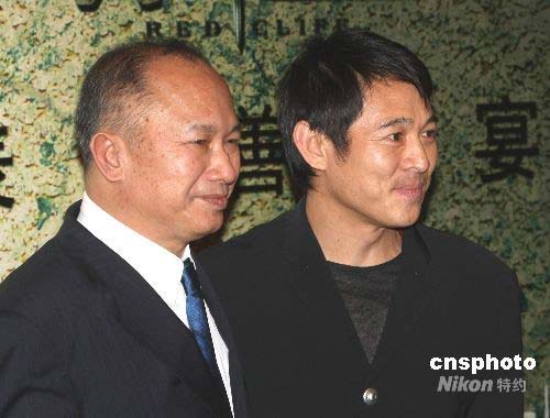7月1日晚,電影《赤壁》劇組和瑞士某品牌名表在北京舉辦慈善晚宴,將募集的100萬元人民幣善款捐贈中國紅十字會李連杰壹基金計劃,用于四川地震災后重建。導演吳宇森(左)和李連杰出席慈善晚宴。中新社發(fā) 趙振清 攝