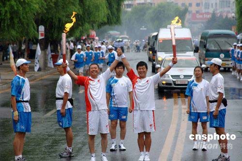 奧運火炬吉林市傳遞 滿文軍、杜建華交接火炬