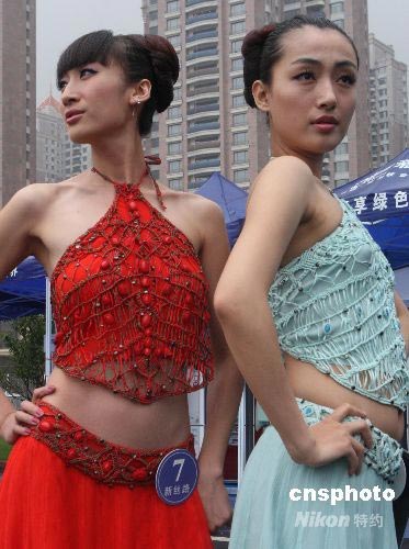 圖為參賽模特選手在美麗的海濱城市大連展示風采。中新社發 錢興強 攝