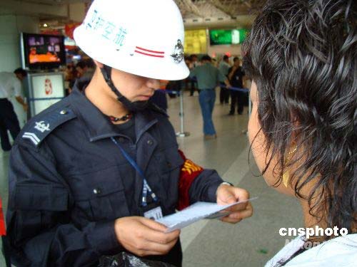 七月二十一日上午,昆明市內(nèi)發(fā)生兩起公交車爆炸案,導(dǎo)致二人死亡,十四人受傷。目前云南省交通、鐵路、民航公安機關(guān)加強了相關(guān)安全防范措施。邊防部隊已部署各邊境口岸、通道的管控工作,加強對嫌疑人員盤查檢查,力爭發(fā)現(xiàn)線索查獲犯罪嫌疑人,防止犯罪嫌疑人逃往境外。圖為昆明機場安保人員正在執(zhí)行安全檢查工作。中新社發(fā) 楊洋 攝