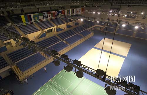 圖:影視紅星韓雪奧運(yùn)羽毛球館激情揮拍