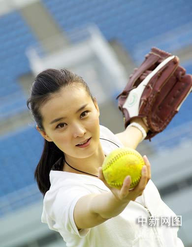 在北京奧運即將開幕之際,中新社特別推出大型系列專題片《明星帶你看賽場》,節目將真實直觀的呈現北京奧運重要比賽場館,并由眾多明星帶大家體驗場館的各項功能,包括入場程序,觀賽須知,建筑特色等。圖為影視紅星王艷在奧運壘球比賽場地豐臺體育中心體驗奧運氛圍。在專題片錄制現場,王艷有模有樣地舉起壘球棒開始學習擊球。嘗試多次,終于成功擊中了飛旋而來的球,興奮的她學著壘球運動員的樣子開始繞場奔跑。