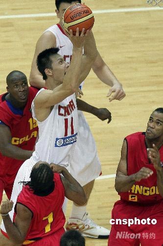 7月29日晚,國際籃聯2008鉆石杯男籃比賽中國隊與安哥拉隊的比賽在江蘇南京奧體中心體育館舉行。最終中國隊83比74戰勝安哥拉隊,取得開門紅并報了斯坦科維奇杯輸球的一箭之仇。參加鉆石杯男籃比賽的隊伍包括阿根廷隊、澳大利亞隊、塞爾維亞隊、安哥拉隊、伊朗隊和東道主中國隊。這次比賽也是北京奧運會前各隊的最后一次熱身機會。圖為中國隊11號隊員易建聯進攻。 中新社發 盛佳鵬 攝