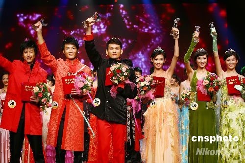 圖為來(lái)自海南的26號(hào)選手葉雷和來(lái)自山東的14號(hào)選手李營(yíng)分獲男女冠軍。30號(hào)廣西選手唐明正、25號(hào)海南選手高雪竹分獲男子亞軍和季軍;16號(hào)江西選手胡琴、13號(hào)山西選手劉靜分獲女子亞軍和季軍。2008cctv模特電視大賽南寧分賽區(qū)(廣西、廣東、云南、貴州、海南)在廣西電視臺(tái)1000平米演播大廳進(jìn)行總決賽。中新社發(fā) 駱文剛 攝
