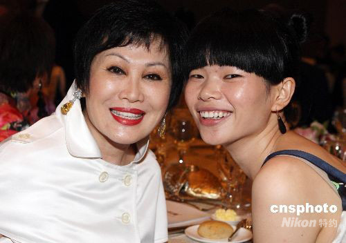 圖為美籍華人靳羽西與中國模特呂燕亮相北京突尼斯旅游文化周。 中新社發(fā) 錢興強(qiáng) 攝
