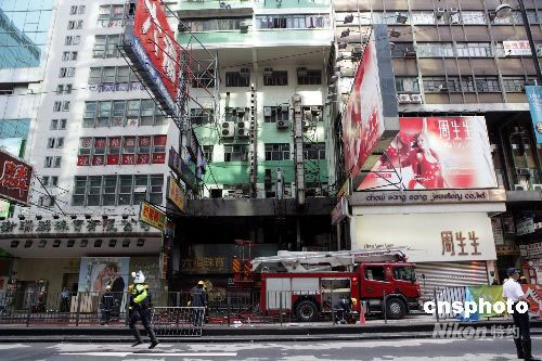 八月十日下午三時(shí)許,香港旺角嘉禾大廈的五級(jí)火警被救熄,此次大火中兩名消防員殉職,一名老婦死亡,另五十六人受傷。火警在當(dāng)天九時(shí)許發(fā)生,焚燒了近六個(gè)小時(shí)。中新社發(fā) 洪少葵 攝