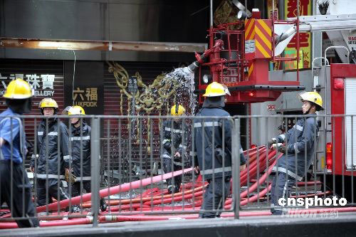 十日上午九時(shí)許香港旺角嘉禾大廈發(fā)生五級火警,焚燒了近六個(gè)小時(shí)的大火在下午三時(shí)許救熄,火警中兩名消防員殉職,一名老婦死亡,另五十六人受傷。中新社發(fā) 洪少葵 攝