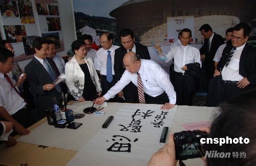 八月十四日,中國國民黨主席吳伯雄回到祖籍地--福建永定縣下洋鎮思賢村,在參觀思賢小學揮毫寫下“思賢村”三個大字。當天,吳伯雄夫婦時隔八年再度返鄉祭祖。中新社發 鄭祚聲 攝