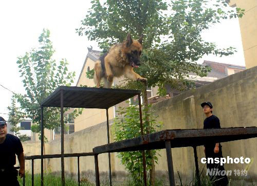 河南省濟(jì)源市刑警支隊(duì)舉行“警犬反恐演練”活動(dòng)。警犬在刑警的帶領(lǐng)下進(jìn)行了穿越障礙、追捕逃犯、嗅覺(jué)鑒別等一系列反恐演練科目,大大強(qiáng)化了警犬進(jìn)行反恐實(shí)戰(zhàn)的能力。中新社發(fā) 平白 攝