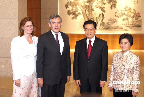 胡錦濤夫婦歡迎出席奧運閉幕式的英國首相布朗夫婦