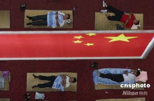 圖:華中師范大學新生家長打地鋪過夜(2)