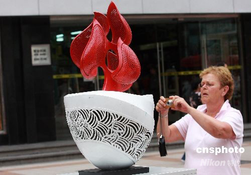 圖:奧林匹克藝術品《圣火之夢》吸引外國游客