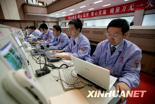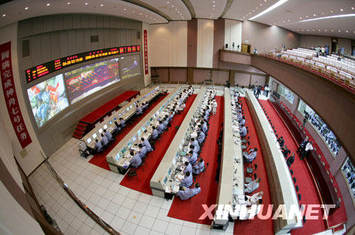9月26日,科研人員在北京航天飛行控制中心對(duì)神舟七號(hào)進(jìn)行飛行控制。新華社記者 查春明 攝