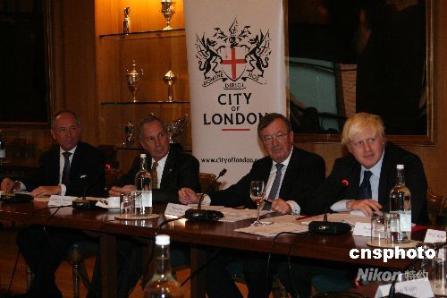 當(dāng)?shù)貢r(shí)間6日下午,紐約市長邁克爾·布隆博格在倫敦金融城,與倫敦市長鮑里斯·約翰遜及倫敦金融城的高層舉行圓桌會(huì)談,商討金融形勢(shì)。圖為布隆博格(左二)、約翰遜(右一)、倫敦金融城資源與政策委員會(huì)主席斯圖亞特·弗雷澤(右二)和副主席邁克爾·斯奈德(左一)。中新社發(fā) 李鵬 攝