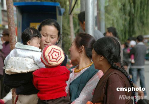 10月6日16時30分,距拉薩直線距離約76公里的西藏拉薩市當雄縣寧中鄉(xiāng)(北緯29.8度,東經90.3度)發(fā)生6.6級地震,拉薩市有強烈震感,持續(xù)時間約30多秒,隨后有幾次感覺明顯的余震。圖為抱著孩子的婦女在街邊暫避。中新社發(fā) 周波 攝