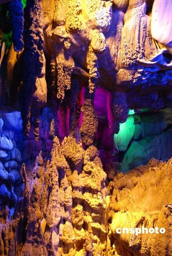 廣西桂林山青水秀甲天下,世界獨特典型的喀斯特地形構成了別具一格的桂林山水,山多有洞,洞幽景奇,瑰麗壯觀。洞中鐘乳石,鬼斧神工,琳瑯滿目,栩栩如生,千姿百態如畫美。中新社發 周利朔 攝