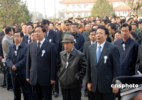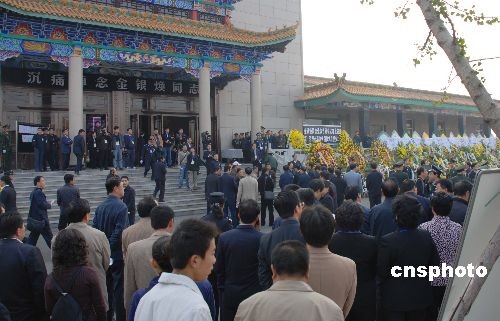 10月17日上午,山西省政協主席金銀煥遺體送別式在太原舉行。山西省政協主席金銀煥在忻州調研返并途中突遇車禍,于2008年10月11日13:40不幸殉職,終年56歲。中新社發 張雷杰 攝