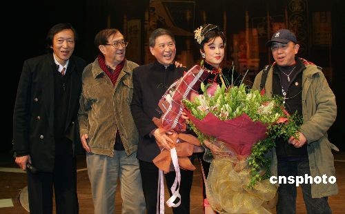 該組圖片攝于2005年1月6日晚,由劉曉慶領銜主演的大型歌舞話劇《金大班的最后一夜》在上海隆重上演。這部大型歌舞話劇是根據白先勇先生的作品改編而成的,著名導演謝晉到場祝賀并向慈善基金會捐款。中新社發 潘索菲 攝