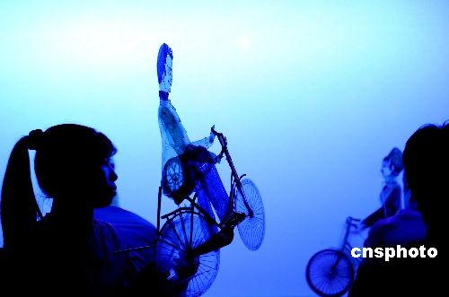 10月20日,北京老舍茶館內表演的皮影戲受到中外來賓的喜愛。當日,文化部授予老舍茶館“國家文化產業示范基地”在店內揭牌。中新社發 廖攀 攝