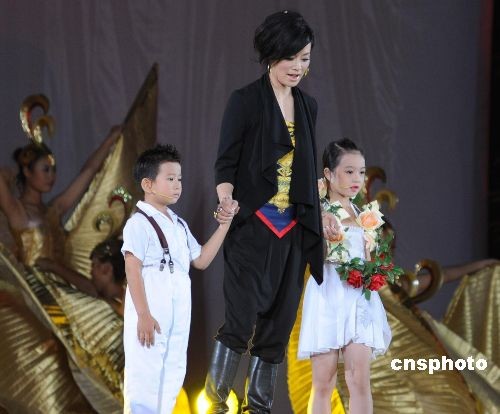 10月22日晚,第五屆中國—東盟博覽會暨第十屆南寧國際民歌藝術節晚會開幕,中國內地知名女歌手毛阿敏身穿肚兜亮相。中新社發 蔣雪林 攝