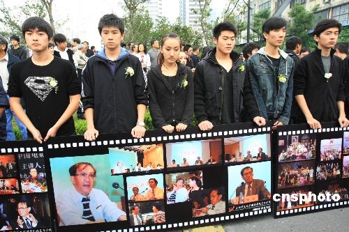 上海師范大學謝晉影視藝術學院的學生含淚送別恩師。中新社發 湯彥俊 攝