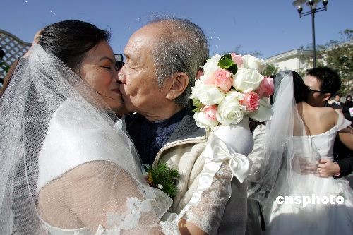 10月26日,11對來自全國各地的新人在北京舉行集體婚禮。婚禮中,中央美術學院的吳介琴教授是所有新人里年齡最大的,今年已經81歲了。他的愛人蔣曉輝女士今年58歲,兩人相識于網絡。