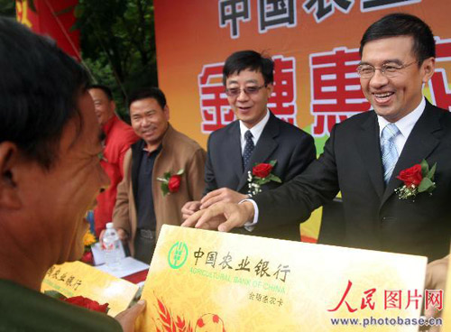 2008年10月28日,在農行麗江市分行金穗惠農卡首發儀式上,剛剛就任云南麗江市副市長的中央電視臺著名節目主持人王志首次履行新職。(梁志強)