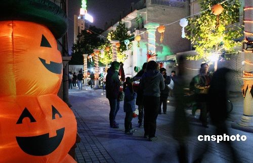 天津意式風(fēng)情區(qū)充滿了萬(wàn)圣節(jié)的氣氛。中新社發(fā) 李歲豐 攝